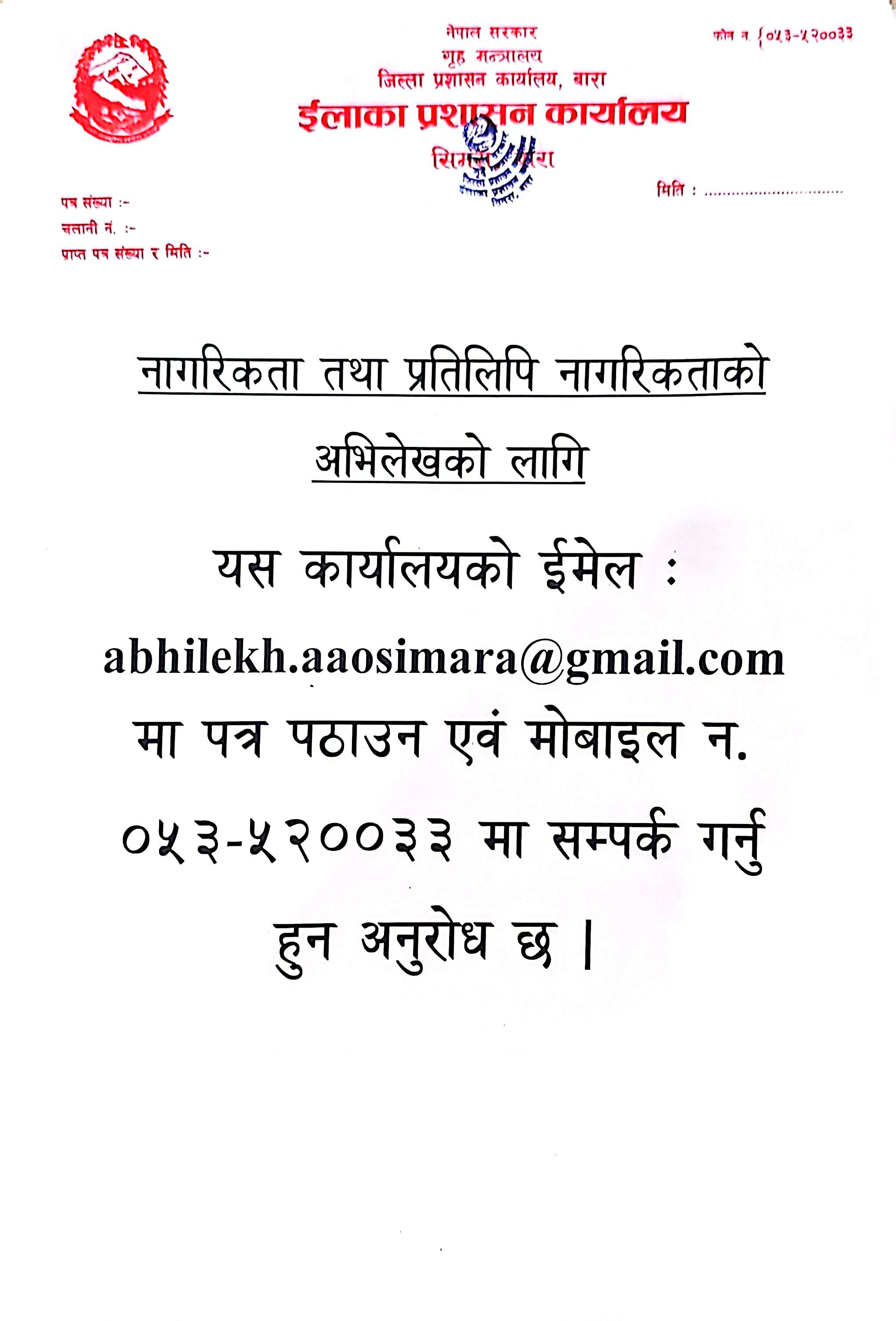 © सर्वाधिकार सुरक्षित ईलाका प्रशासन कार्यालय, सिमरा, बारा .