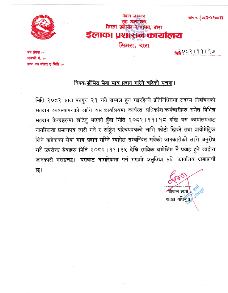 © सर्वाधिकार सुरक्षित ईलाका प्रशासन कार्यालय, सिमरा, बारा